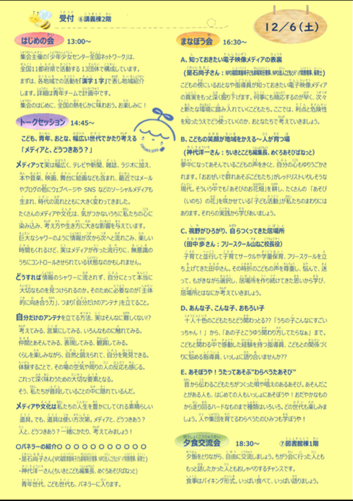 ひとつのテーマで、実際に体を動かしたり、レポートを聞いたり、各会の
